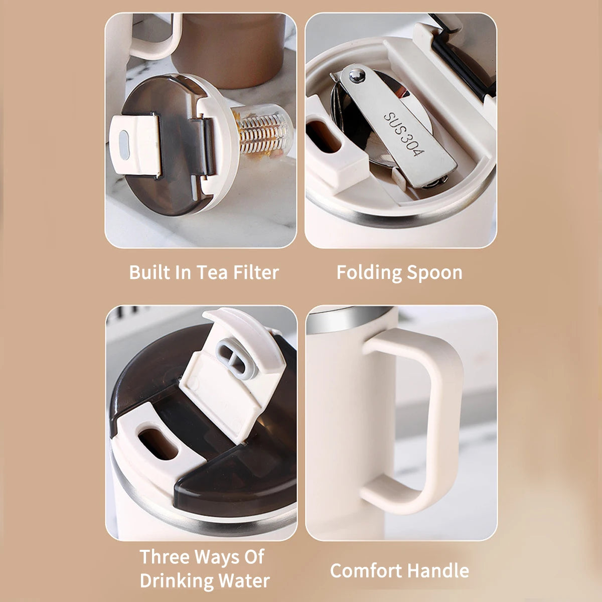 Die WORTHBUY doppelwandige Kaffeetasse aus hochwertigem 304-Edelstahl ist ein zuverlässiger Begleiter für Kaffee, Tee und weitere Getränke. Mit einem Volumen von 500 ml oder 550 ml sorgt die isolierende Doppelwand dafür, dass Ihre Getränke länger heiß oder kalt bleiben, während sie Ihre Hände vor Hitze schützt. Ausgestattet mit einem Teesieb, einem zusammenklappbaren Löffel, einem Deckel und einem stabilen Griff, eignet sich die Tasse ideal für Zuhause, Büro oder unterwegs. Die auslaufsichere Bauweise garantiert eine sichere Nutzung ohne Verschütten. Eigenschaften: - Material: 304-Edelstahl (lebensmittelecht, rostfrei) - Kapazität: 500 ml / 550 ml - Farben: Beige, Schwarz, Braun - Konstruktion: Doppelwandig, wärmeisolierend und vor Verbrühungen schützend - Zubehör: Teesieb, faltbarer Löffel, Deckel, Henkel - Merkmale: Auslaufsicher, robust, langlebig, vielseitig einsetzbar - Typ: Kaffeetasse / Thermobecher - Design: Schlicht und modern Vorteile: ✔ Effektive doppelte Edelstahl-Isolierung für langanhaltende Temperaturkontrolle ✔ Integriertes Teesieb und faltbarer Löffel für vielseitige Anwendungsmöglichkeiten ✔ Sichere Handhabung dank auslaufsicherem Verschluss und ergonomischem Griff ✔ Optimal für Kaffee, Tee, Wasser oder andere Getränke ✔ Strapazierfähiges und elegantes Design für den täglichen Gebrauch, Reisen und Büro Ideal für alle, die eine praktische, langlebige und stilvolle Tasse für den Alltag suchen.